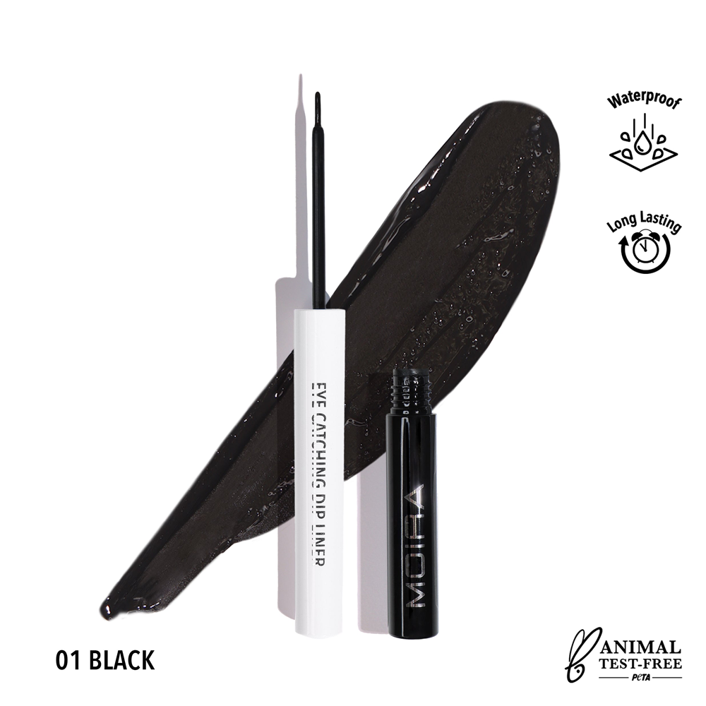 El delineador MOIRA Eye Catching Dip es lo último en delineador de ojos de larga duración, completamente impermeable y resistente a las manchas. El rotulador con punta de pincel fina y flexible para una aplicación precisa y sencilla guiará la línea hasta un acabado llamativo y se puede utilizar en ojos, rostro y cuerpo.