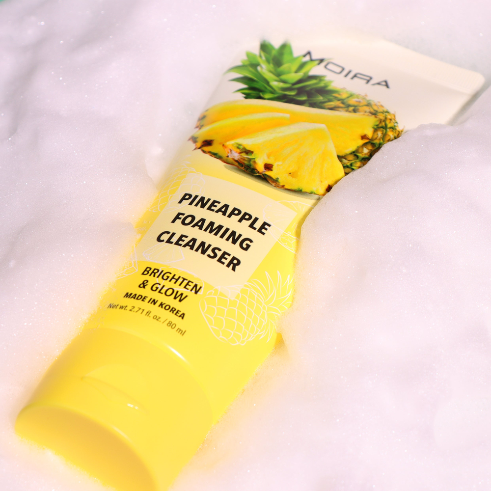 MOIRA Pineapple Foaming Cleanser es una fórmula suave adecuada para todo tipo de piel. Con una infusión de extracto de piña, este limpiador ayuda a crear un brillo saludable e ilumina el cutis.
