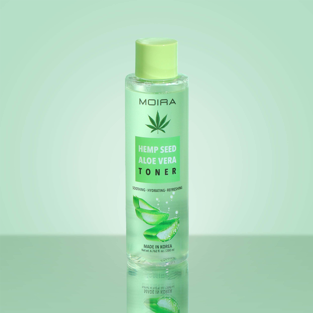 MOIRA Hemp Seed Aloe Vera Toner es un tónico humectante diario que ayuda a preparar la piel para el resto de su rutina de cuidado de la piel mientras apoya su barrera natural de humedad. El extracto de Aloe Vera ayuda a calmar la piel y mejorar su capacidad para retener la humedad. El aceite de semilla de cáñamo Cannabis Sativa dejará tu piel suave e intensamente hidratada mientras reduce el enrojecimiento.