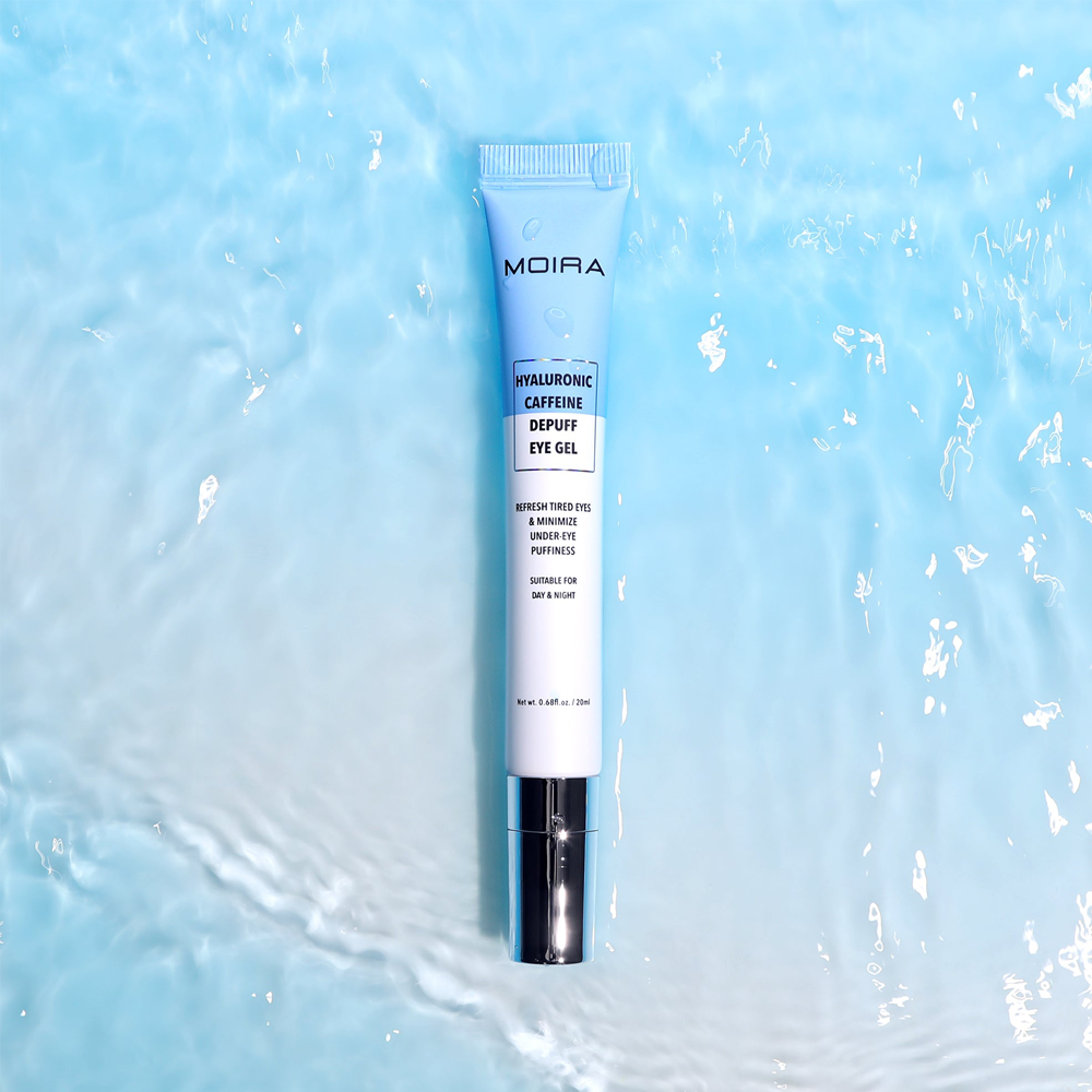 MOIRA Hyaluronic Caffeine Depuff Eye Gel proporciona un efecto refrescante instantáneo y ácido hialurónico ideal para refrescar los ojos cansados y minimizar la hinchazón debajo de los ojos. Esta formulación combina ácido hialurónico, glicerina y cafeína que hidrata y rellena visiblemente las líneas finas mientras reduce la hinchazón. Seguro para uso debajo de los ojos. Libre de alcohol, aceite y parabenos. Apto para día y noche.
