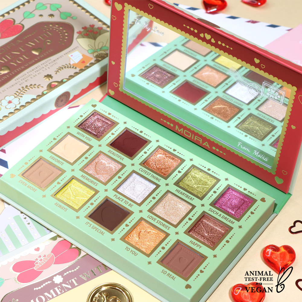Nuestra serie Love Letter se inspiró en momentos de amor pasados y presentes. Cada paleta presenta 15 tonos de brillantes, cromados duales y mates espectaculares, perfectos para crear hermosas miradas. Permítanos llevarlo nuevamente a crear cosas suaves, soñadoras, sensuales, glamorosas y todo lo que le brinde felicidad. ¡Un momento contigo es todo lo que necesitas!