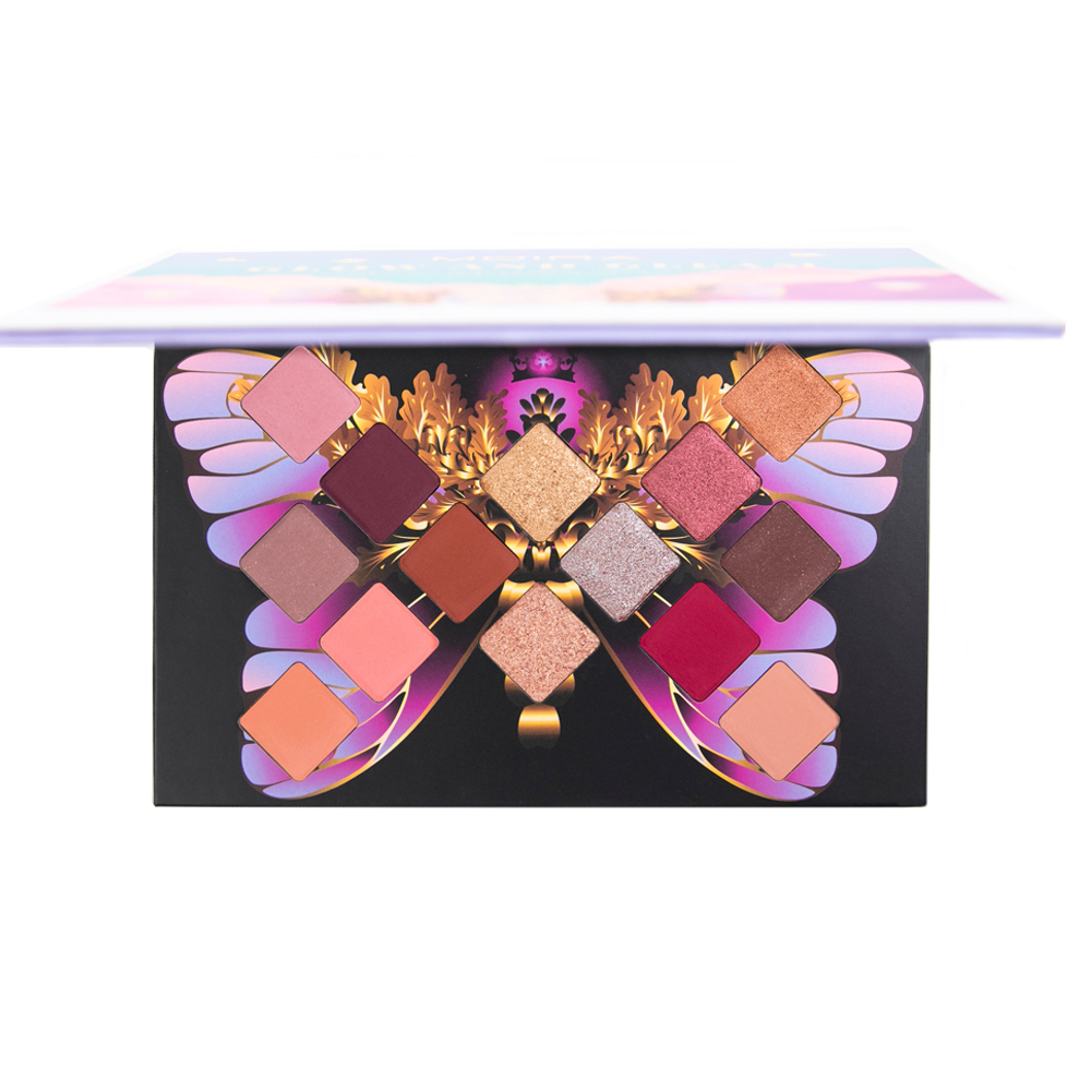Brilla con BRILLO Y BRILLO. Esta paleta inspirada en mariposas incluye oro metalizado centelleante, marrón cromo dúo, rojo rubí y colores neutros versátiles. Traiga miradas de otro nivel que hipnoticen a todos.
