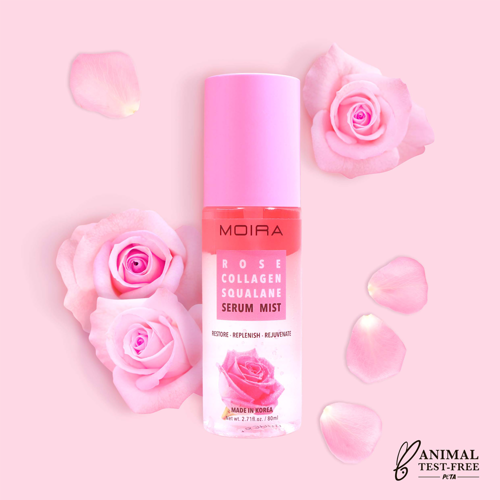 MOIRA Rose Collagen Squalane Serum Mist es una fórmula de base dual de agua y aceite desarrollada para hidratar y brindar una potente mezcla de antioxidantes mientras equilibra la piel a su PH ideal. Con una infusión de rosa, colágeno y escualano, esta fórmula ayuda a calmar y nutrir la piel, manteniéndola suave, con un aspecto juvenil y terso. Para todos los tipos de piel.